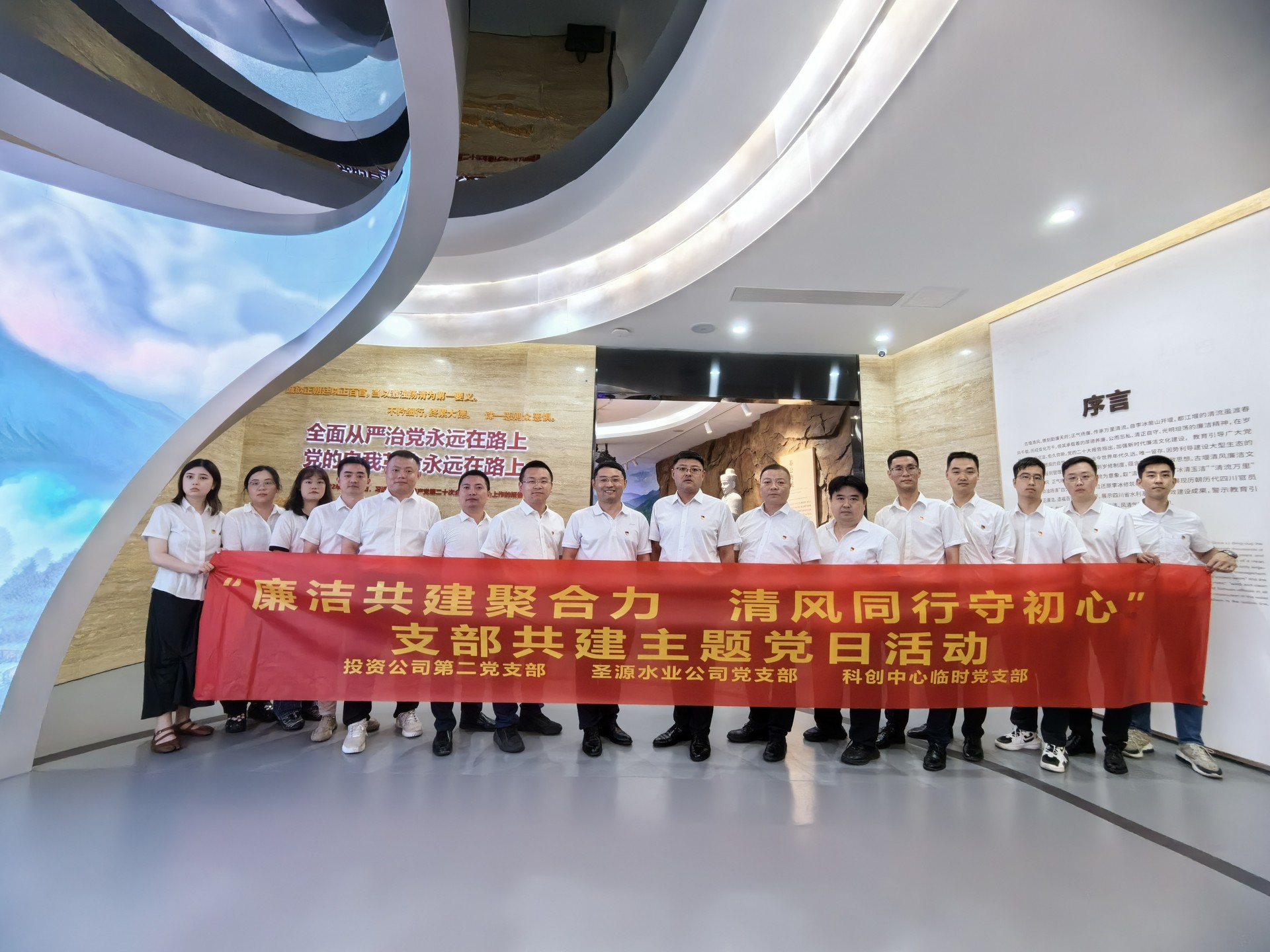 為落實公司黨委關于開展基層黨組織結對共建活動的有關要求,共同促進黨紀學習教育聯學共進,6月27日,投資公司第二黨支部、圣源水業公司黨支部、科創中心臨時黨支部帶領全體黨員赴四川省都江堰水利發展中心“古堰清風”廉潔文化館開展主題黨日活動。