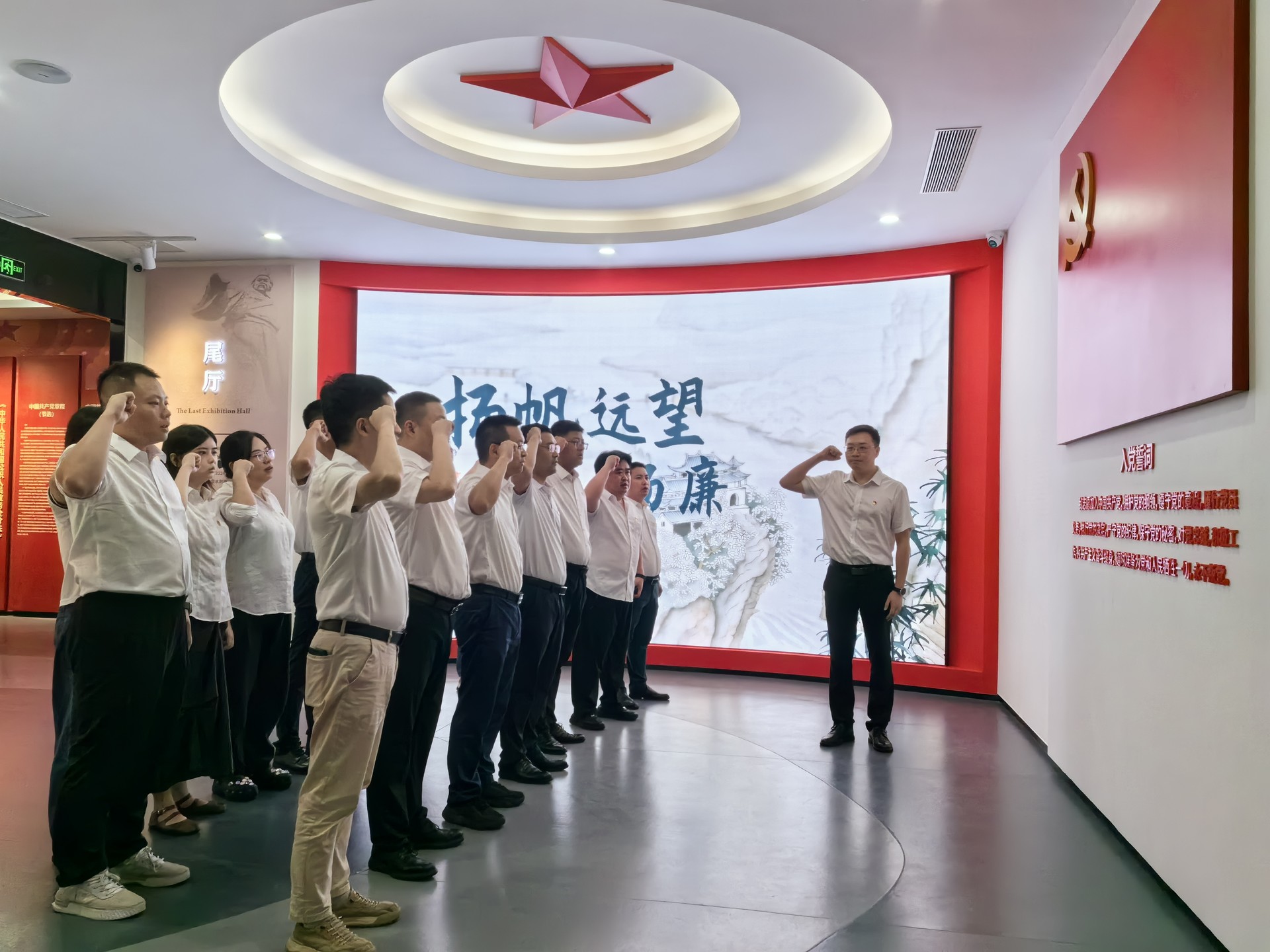 活動期間,大家通過參觀“冰清玉潔”“清流萬里”“風清氣正”“抑濁揚清”四個展廳,全面了解李冰修筑都江堰的過程,領悟歷朝歷代四川官員治水先賢的勤廉事跡,感受蜀地官員擔當盡責、清正廉潔、造福百姓的優秀品質。參觀期間,全體黨員干部職工深入學習習近平總書記關于全面從嚴治黨的重要論述,以及水利廳黨組對全面從嚴治黨和黨風廉政建設的新要求、新部署,通過圖文展示、觀看警示短片、閱讀懺悔書等多種形式,為黨員干部職工敲響拒腐防變、正風肅紀的警鐘。最后,全體黨員面對黨旗集體重溫入黨誓詞。