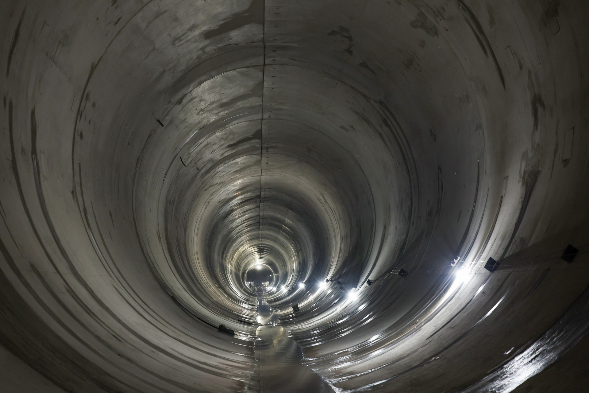 金雞梁隧洞內,工人正在焊接二襯仰拱鋼筋接頭