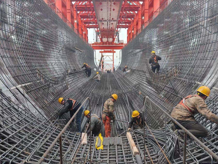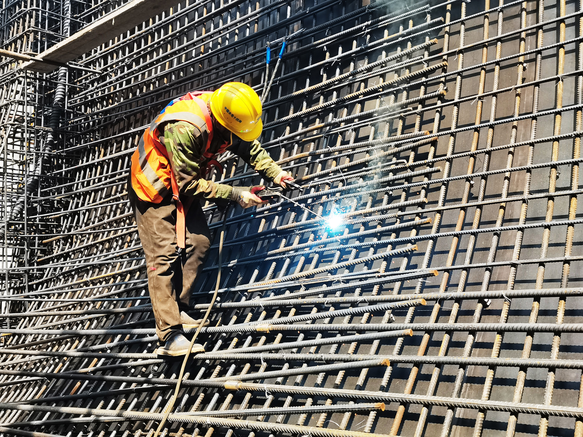 粟家廟渡槽,工人正在焊接槽身漸變段鋼筋